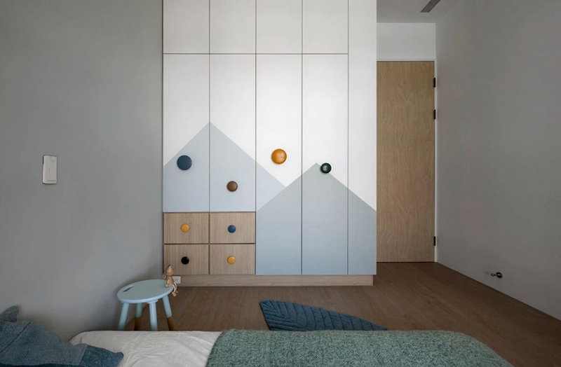 按照国内的生活习惯,孩子上学前几乎都是跟父母一起住,很少会单独一个房间。而且 5~10 岁这个阶段,孩子的喜好变得比较快,幼龄化的装修可能很快就会被孩子嫌弃。