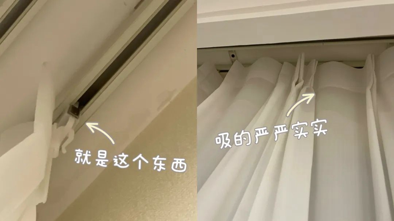 原来,人家窗帘的轨道,现在都有带磁吸的,拉窗帘时,两边会自动吸住,直接把漏光问题解决一大半。