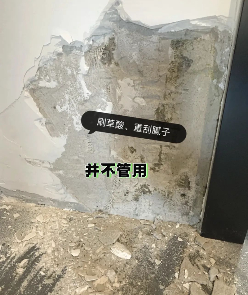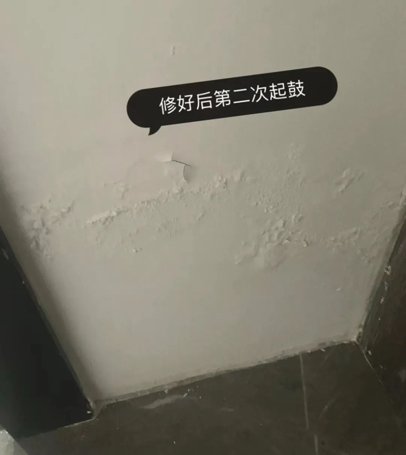 尽管卫生间墙地面都做了防水,但入住后还是发现,卫生间外墙墙皮起鼓返碱。